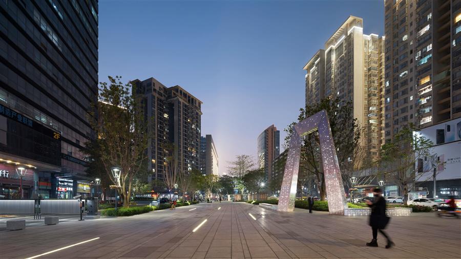 东莞广发片区城市品质提升工程改造面积约 8 万㎡,其中道路面积约 2 万㎡,景观面积约 6 万㎡。AUBE 欧博设计连同代建方东莞市万科房地产有限公司,对片区公共空间绿化、铺装、城市家具以及人车交通空间进行全面深度的整治提升,建设具有特色的人性化城市公共空间。