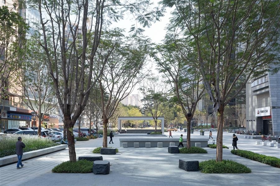 东莞广发片区城市品质提升工程为片区成功打造一个人与自然和谐相处,兼具生态功能的城市复合街区,解决了片区长期停车乱问题,为社区注入活力和情感,使街区成为绿色自然的漫步空间。
