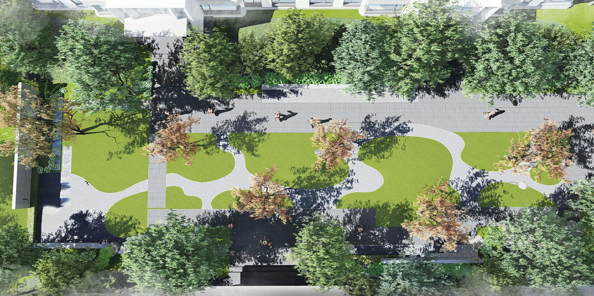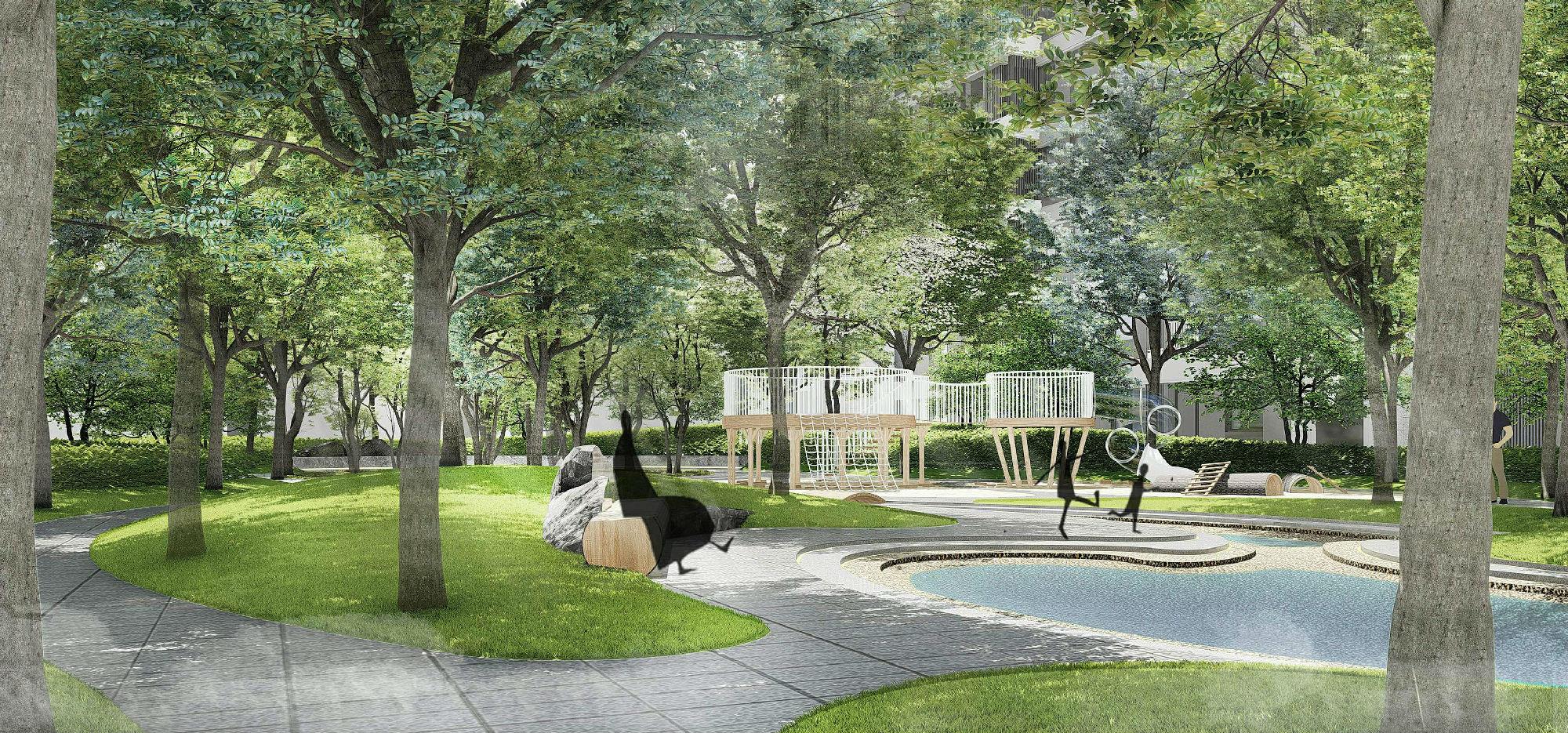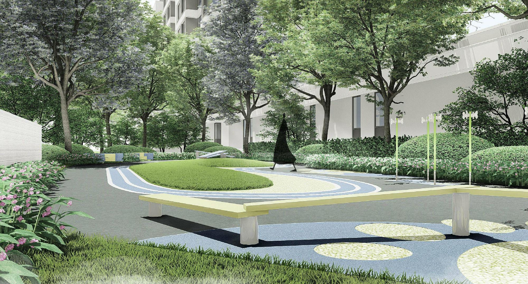 在园林设计之初,考虑到了光照对健康的影响,利用电脑分析模型,对四季日照进行了精准的模拟分析,并综合考量不同节气,不同时间的光照角度,结合不同年龄人群对日照的需求,精心划分儿童、青年、老人的室外活动天地。