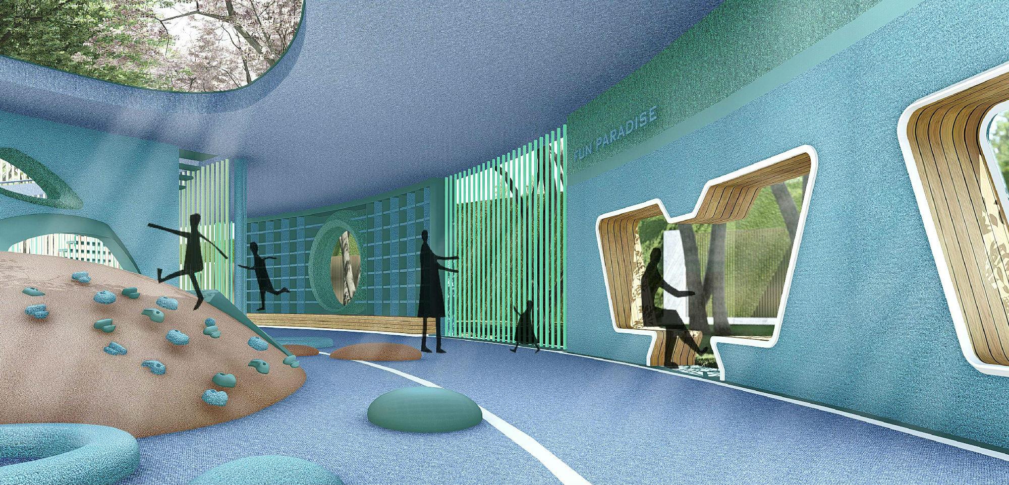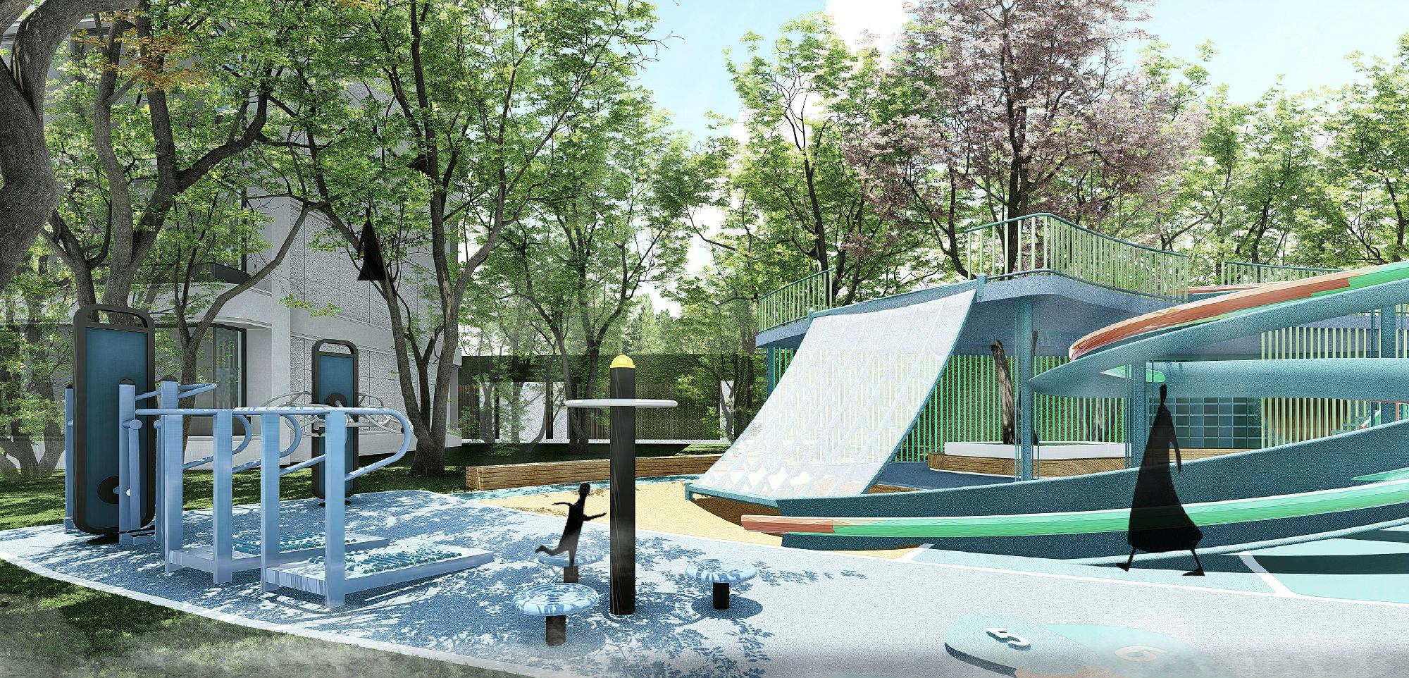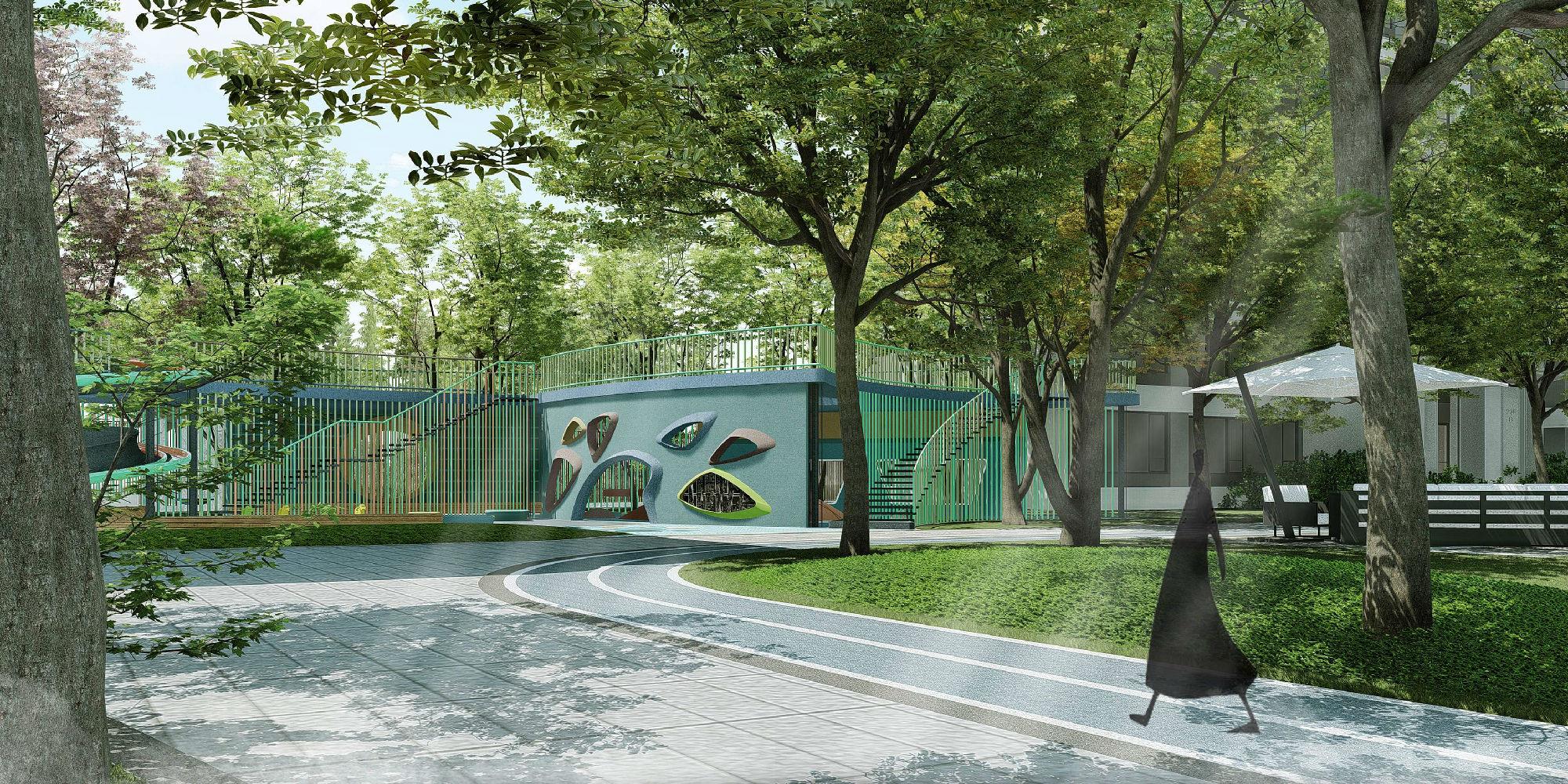 项目结合国际先进理念,融合功能、安全、趣味、体验、互动五位一体,在半遮阴式的场地设计出老人儿童活动区,赋予了空间更多的可能性。
